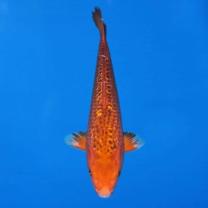 The Gin Rin Aka Matsuba is a distinguished variant within the Matsuba group of koi fish, renowned for its striking appearance. Unlike other Matsuba, this variety showcases a vibrant red coloration that lacks a metallic sheen, creating a bold visual impact. The scales are adorned with a glittering quality reminiscent of diamonds, which enhances their overall allure and adds an element of depth and diversity to the Matsuba classification.