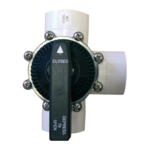 The ABS Full Flow Valve is a universal valve so it will take both 1.5″ and 2″ ABS Pipework. For use on the 1.5″ ABS you can fit it inside the full flow valve or for 2″ you simply fit the pipe over the outside of the full flow valve. The handle is also a quick indication of the valves position, as there is a closed indicator arrow on the handle. This valve can be opened or closed in very small amounts simply by pressing down on the back on the handle and rotating to your required position.