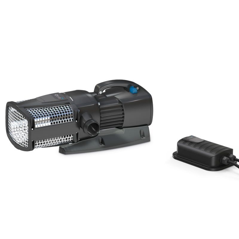 The OASE AquaMax Expert 27000/12 V is a filter and watercourse pump, feeding large filter systems for koi and swimming ponds as well as demanding watercourses and waterfalls is child’s play. It offers high flow rates, but works absolutely economically. The output of this energy-efficient powerhouse can also be smartly controlled, individually regulated and monitored using the InScenio FM-Master EGC or EGC Controller accessory. And all this in a safe 12V version – ideal for swimming ponds and natural pools. The filter and watercourse pump also copes perfectly with salt water. Coarse dirt particles up to 11 mm in size are reliably transported into the filter with high efficiency. The housing is made of robust, durable stainless steel and can be submerged or installed dry. The filter and watercourse pump is patented, frost-proof down to -20 °C and runs exceptionally quietly – ideal for use in a pump chamber.