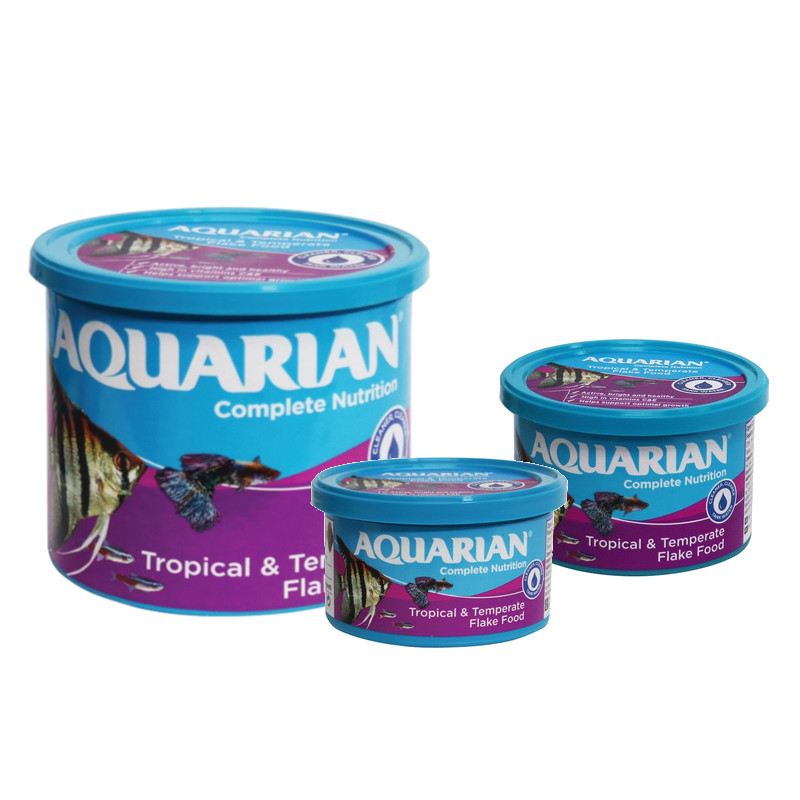 Aquarian Tropical Fish Flakes Fish Food is a complete diet ideal for all types of tropical fish including Tetras, Angelfish, Discus, Barbs and Guppies. These nutrient-rich tropical fish food flakes offer a complete diet that helps your tropical fish stay active and healthy. Formulated with Vitamin C, Vitamin E, these tasty fish flakes will keep your tropical fish in good health. Feed twice a day, and provide only as much as your fish will eat within five minutes.