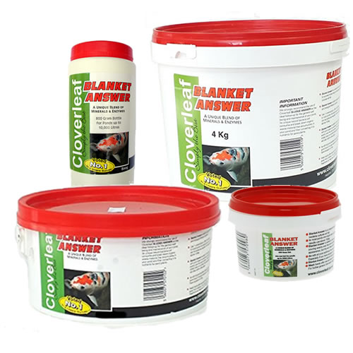 Cloverleaf Blanket Answer works in most temperatures, and seeks to succeed where many commercial bacteria cultures will fail. It is 100% safe for all pond fish, plants, and biological filtration systems. UV units or protein skimmers need not be switched off. Unlike some products on the Cloverleaf Blanket Answer is not dependent upon water temperature, and is not held back/restricted by high ph levels.