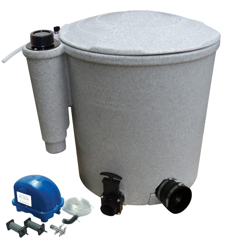 The central chamber holds 30 litres of static K1 media. As the water enters the central chamber, the fine smaller solids become entrapped in the K1. After passing through the K1 media, the clean water then rises and overflows into the inner return pipe of the Eazy Pod and back to the pond.