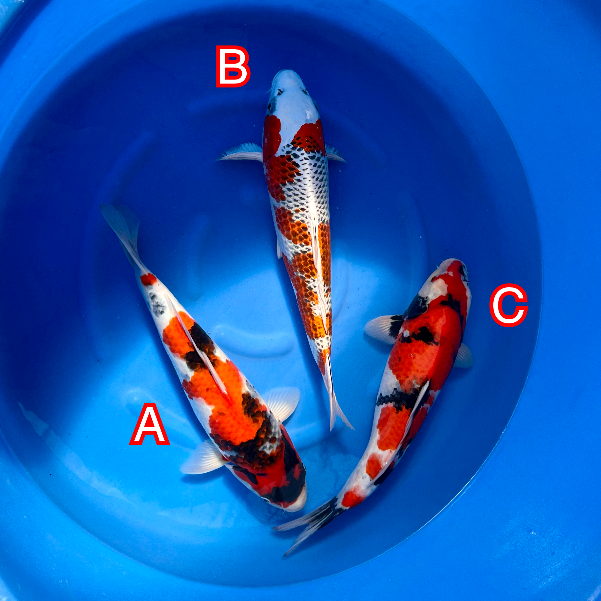 These koi have been hand selected in Japan on the 14/10/24 if you would like to reserve any please complete checkout to reserve your choice. Shipping or Collection is available if you are planning to buy multiple koi over our trip please select collection and we can calculate the shipping cost before shipment based on the amount of boxes required.