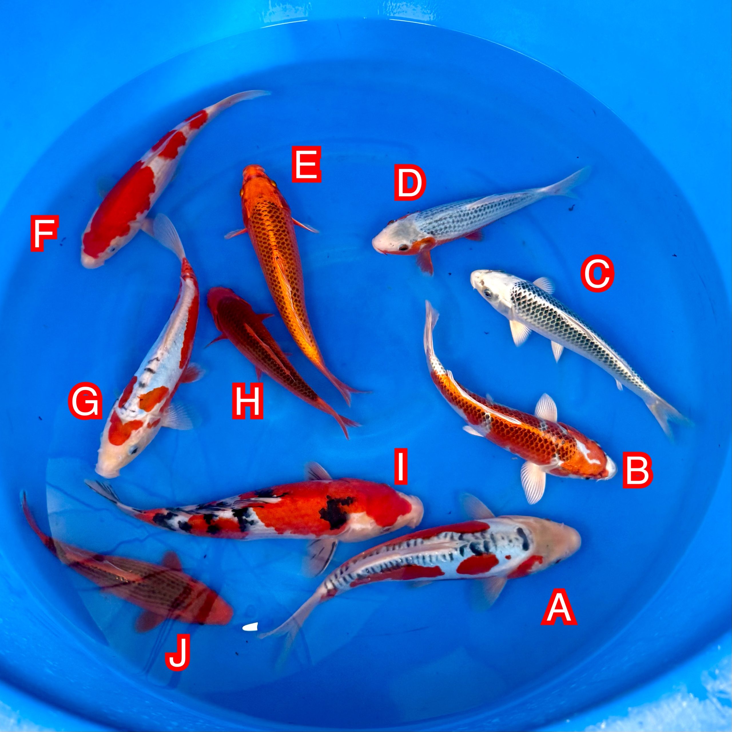 Koi – A, Koi – B, Koi – C, Koi – D, Koi – E, Koi – F, Koi – G, Koi – H, Koi – I, Koi – J