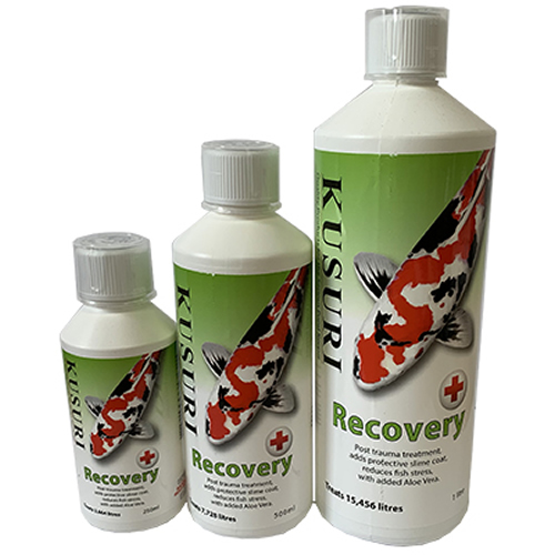 Recovery is a post trauma treatment, adds protective slime coat and reduces fish stress. Recovery protects your fish by adding a slime coat, aiding in the healing of fish wounds, stress and trauma. Recovery also removes Chlorine, Chloramines and detoxify heavy metals from tap water. Recovery can be used at all temperatures when adding tap water, introducing new fish, treating fish or when fish are injured.