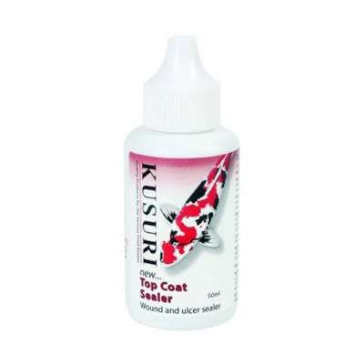 Kusuri Top Coat Sealer is a liquid sealer with anti-bacterial properties. It can be used independently or as an additional covering over the top of Kusuri Orahesive Protective Powder. Use as a final coating over treated wounds and split fins.