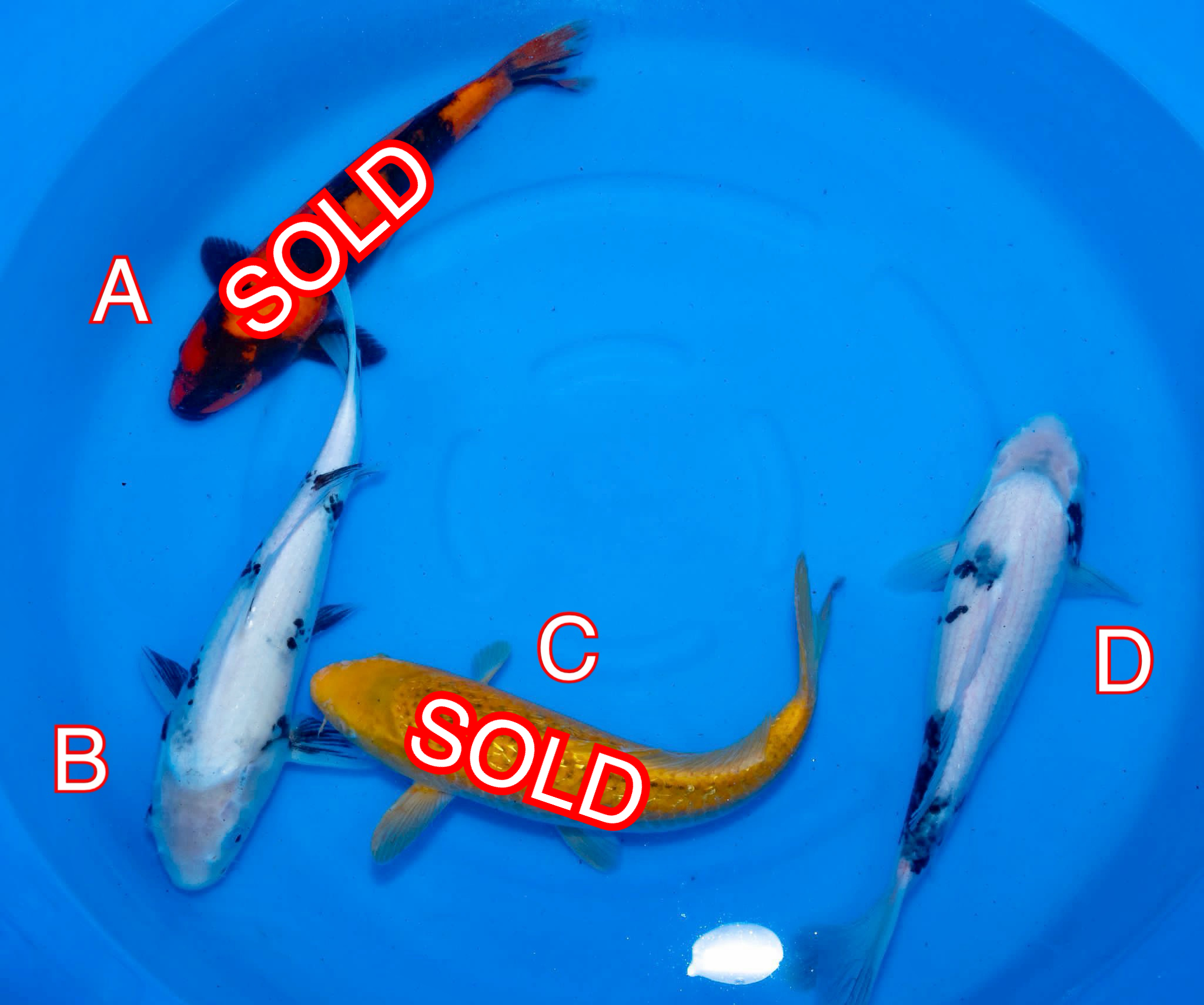 These koi will be shipped to the UK on the 10/05/23 and will be in Quarantine for 4 weeks minimum, So they will not be available to ship until at least the 13/06/23. We will happily keep them for a following 4 weeks if required FOC 11/07/23, we will charge a small fee to keep them any longer than this date.