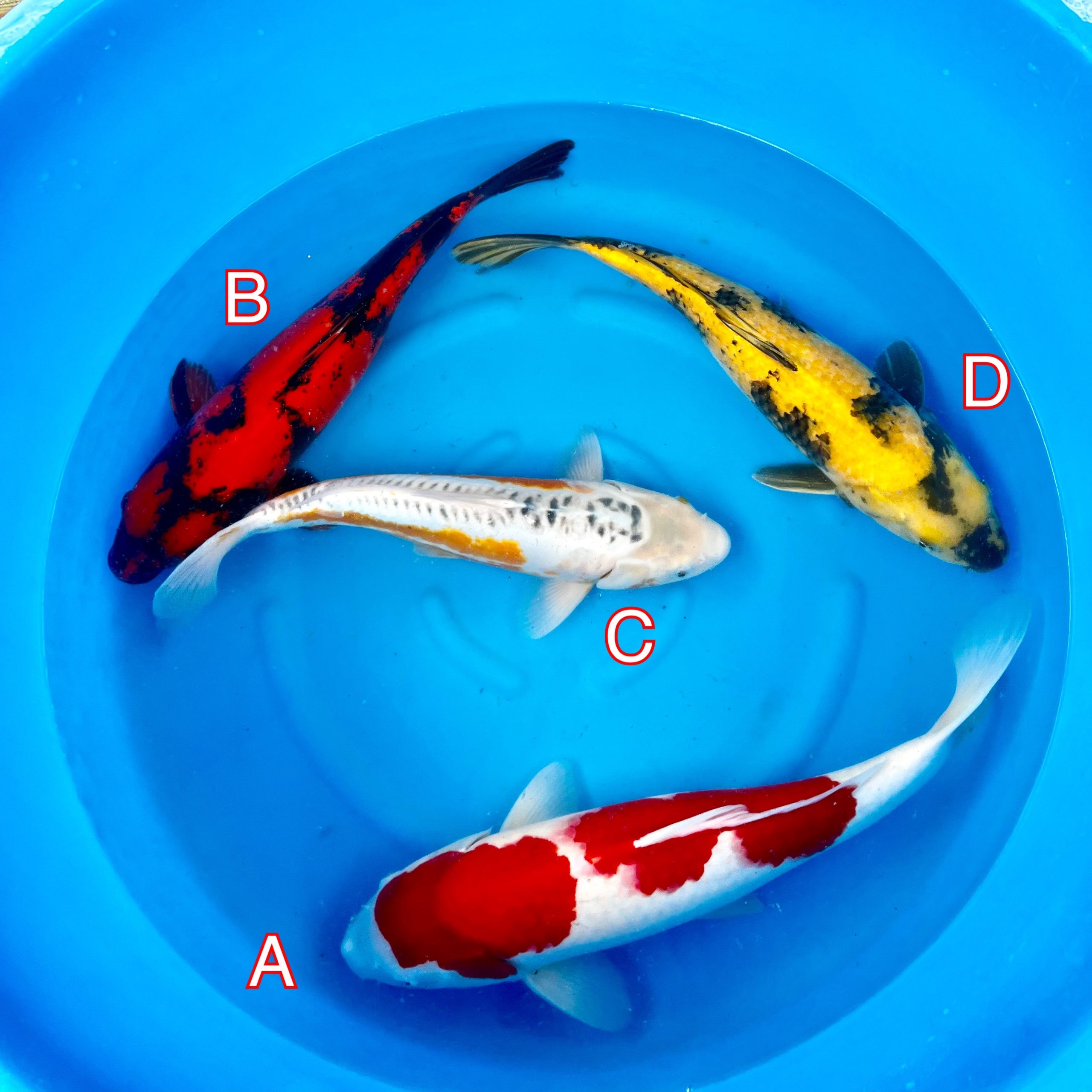 These koi have been hand selected in Japan on the 14/02/23 if you would like to reserve any please complete checkout to reserve your choice. Shipping or Collection is available if you are planning to buy multiple koi over our trip please select collection and we can calculate the shipping cost before shipment based on the amount of boxes required.