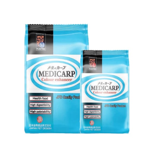 - Medicarp Color Food promotes Koi’s high growth efficiently. The best quality white fish meal is utilized in large quantities for high palatability and high protein.