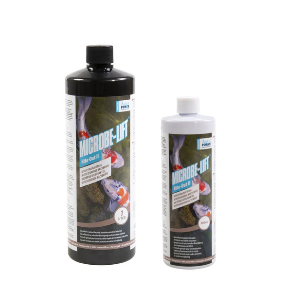MICROBE-LIFT NITE-OUT II is designed specifically for pond waters that contain marine life. Its highly specialized microbial consortium of nitrifying cultures is specially formulated to eliminate ammonia via a natural biological process termed nitrification. Remains active to 4°C! (Best results from 13°C and up). The cultures contained in MICROBE-LIFT NITE-OUT II will establish, promote or stabilize and maintain nitrification in pond waters, eliminating the toxic effect of ammonia. MICROBE-LIFT/NITE-OUT II liquid nitrifying bacteria contains select strains of Nitroso-monas, Nitrospira and Nitrobacter. Nitrosomonas convert ammonia to nitrite and Nitrobacter and Nitrospira convert nitrite to nitrate.