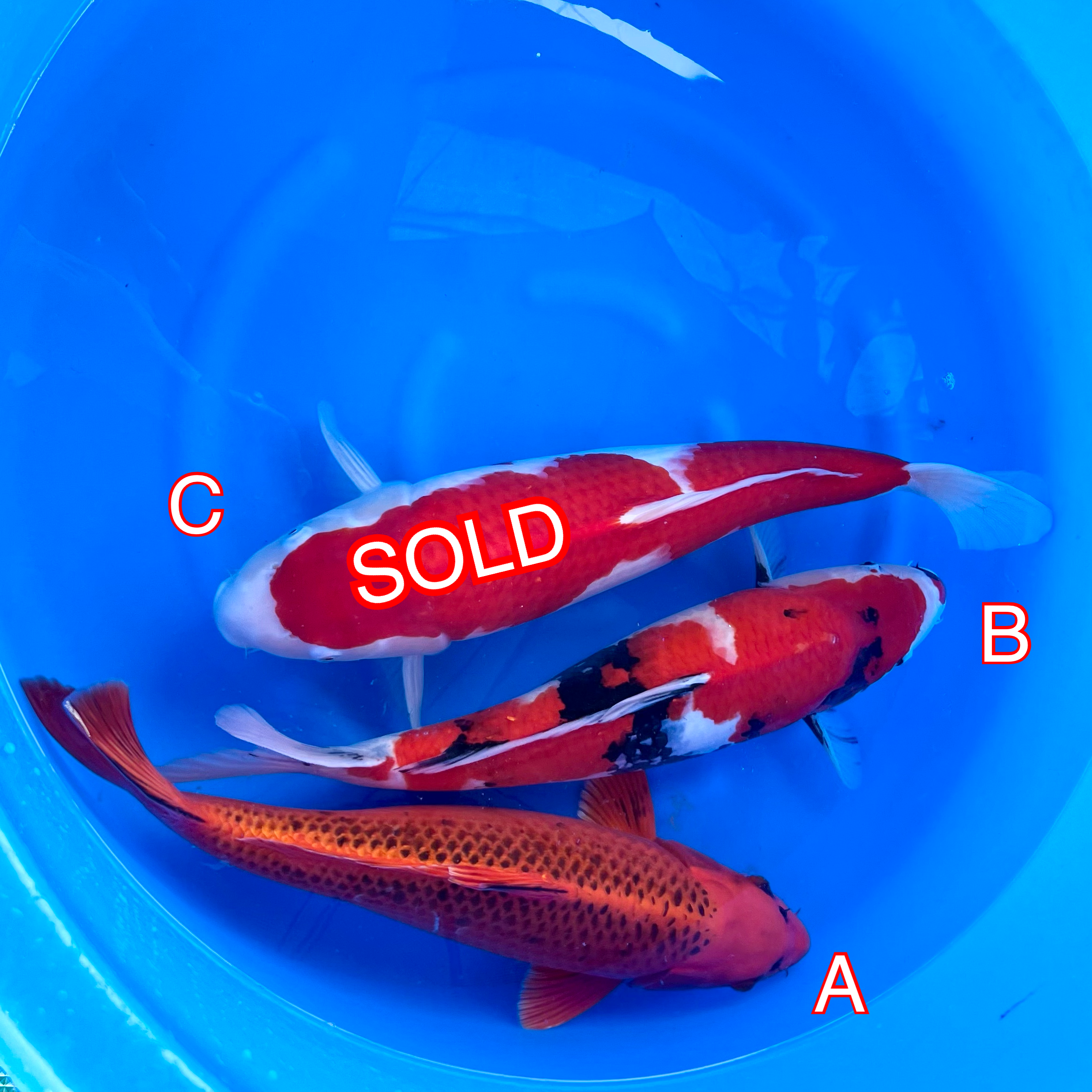 These koi have been hand selected in Japan on the 26/02/24  if you would like to reserve any  please complete checkout to reserve your choice. Shipping or Collection is available if you are planning to buy multiple koi over our trip please select collection and we can calculate the shipping cost before shipment based on the amount of boxes required.