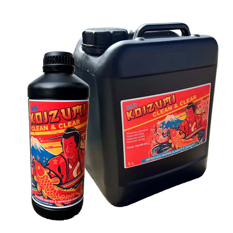 Mr Koizumi “Clean & Clear” contains a unique composition of bacteria designed to be used in both pond and pond filter to improve water clarity and health. Regularly adding these bacteria to the pond filter increases biological action, removing pollutants like ammonia and nitrite. Regularly adding Clean & Clear to the pond water makes the water clearer, reduces sludge and organic materials, and keeps the water algae-free.