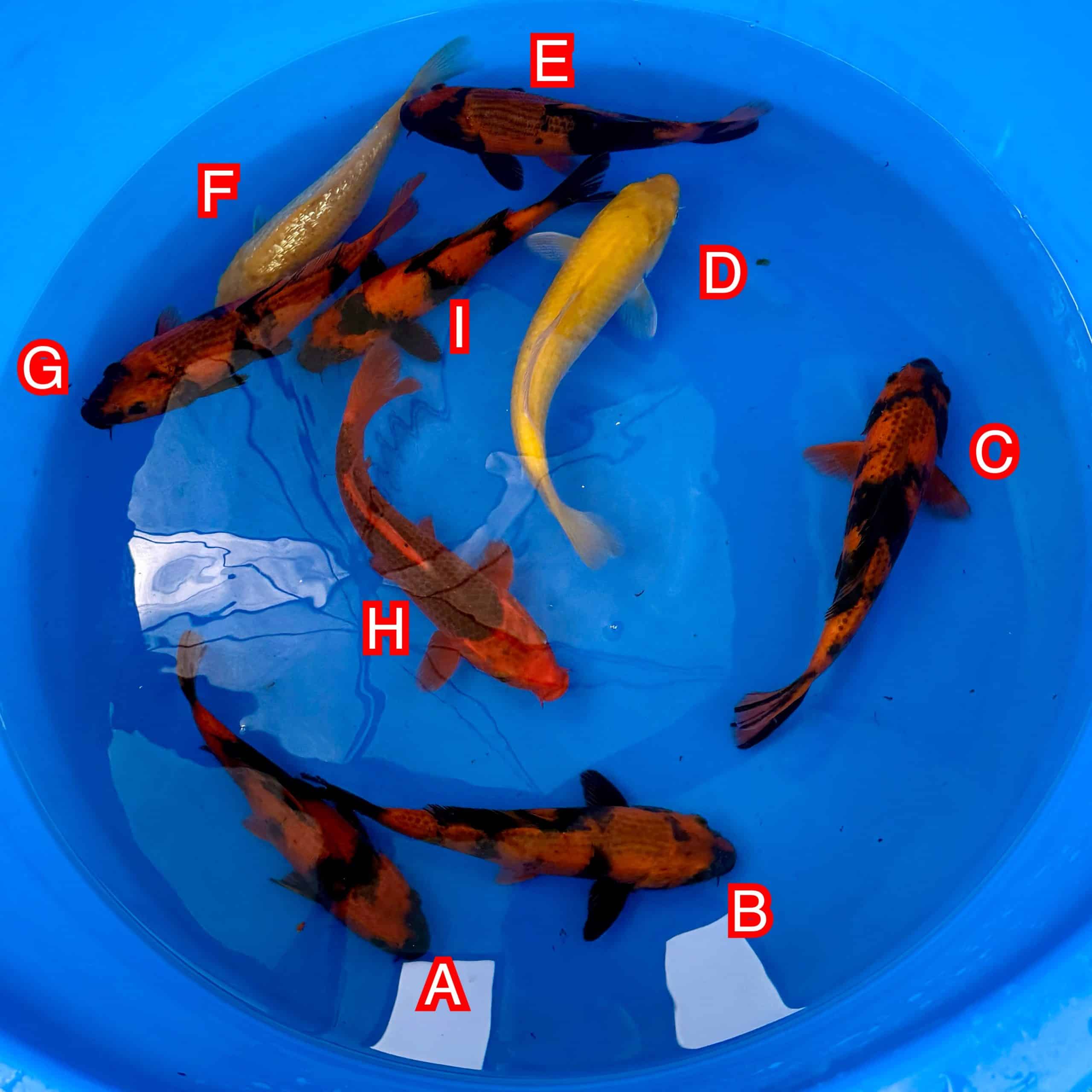 Koi – A, Koi – B, Koi – C, Koi – D, Koi – E, Koi – F, Koi – G, Koi – H, Koi – I, Koi – J