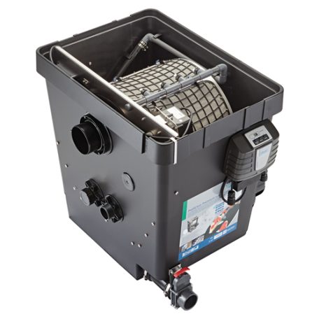 OASE introduces over three years of development with the ProfiClear Premium DF-L Pump-Fed OC. With this filter you get professional technology starting with the Drum Filter Module which provides deep bed filtration to 60 microns. Then the second stage of filtration utilises the moving bed module that contains Hel-X bio media for intelligent decomposition of pollutants and nutrients. This outstanding, high performance filter has a sophisticated micro control system which digitally displays the pond water temperature and handles the self cleaning function for unique, maintenance free operation.