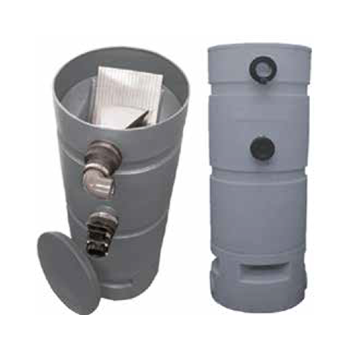 The Crystal Bio housing stands 1225mm high and has an external diamter of 450mm. The Inlet on both models is by means of a 1½” connection and reducing bushes and stepped hosetails are included. The outlet or return is via 3″ pipework under gravity. On the shower model, the waste outlet is blanked off, and when purchased as a sieve version both waste outlet and relevant valves are supplied. The Crystal Bio Sieve filter provides the added benefit of removing waste material before the water enters the biological stage of the shower, adding extra machanical filtration.