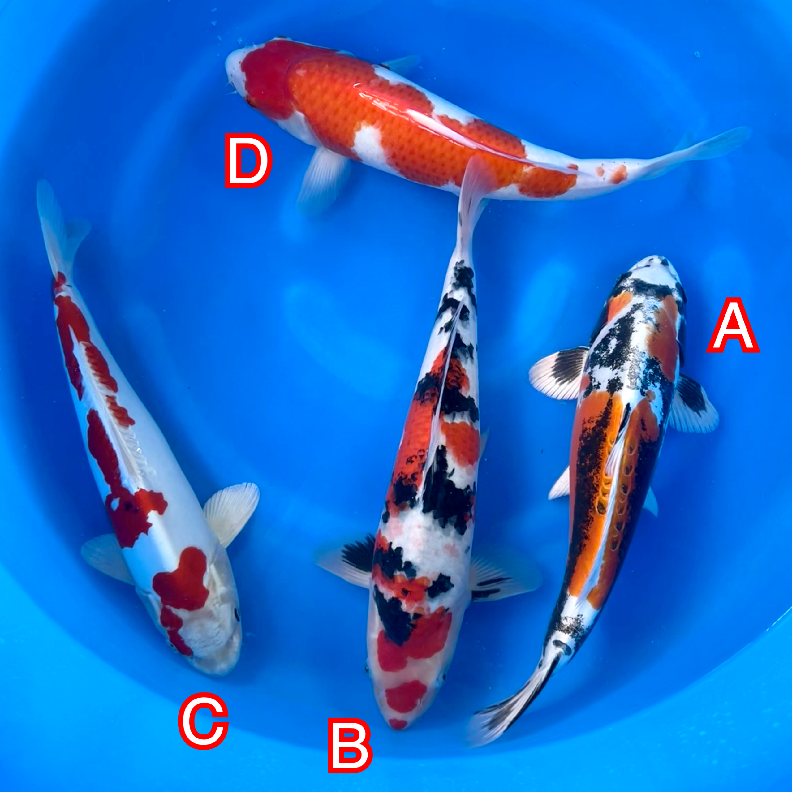 These koi have been hand selected in Japan on the 03/03/25 if you would like to reserve any please complete checkout to reserve your choice. Shipping or Collection is available if you are planning to buy multiple koi over our trip please select collection and we can calculate the shipping cost before shipment based on the amount of boxes required.